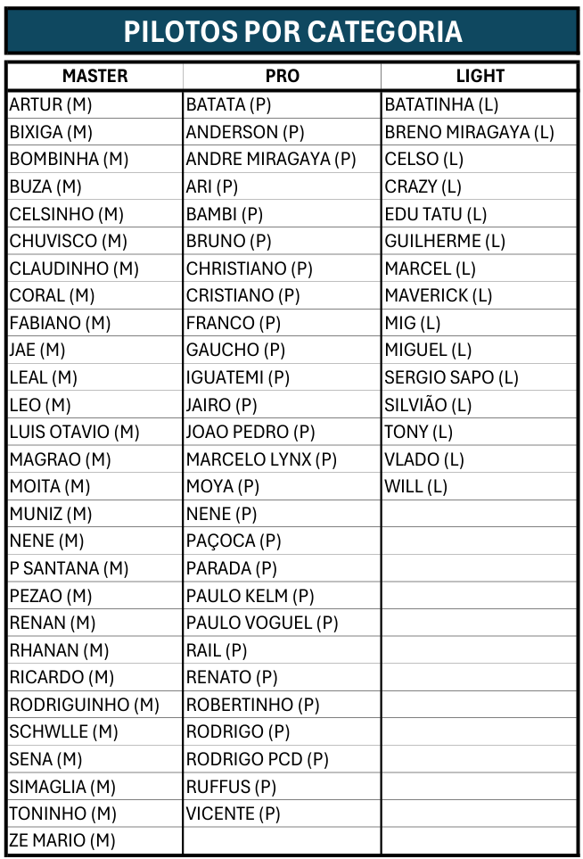 Categoria dos Pilotos 2025