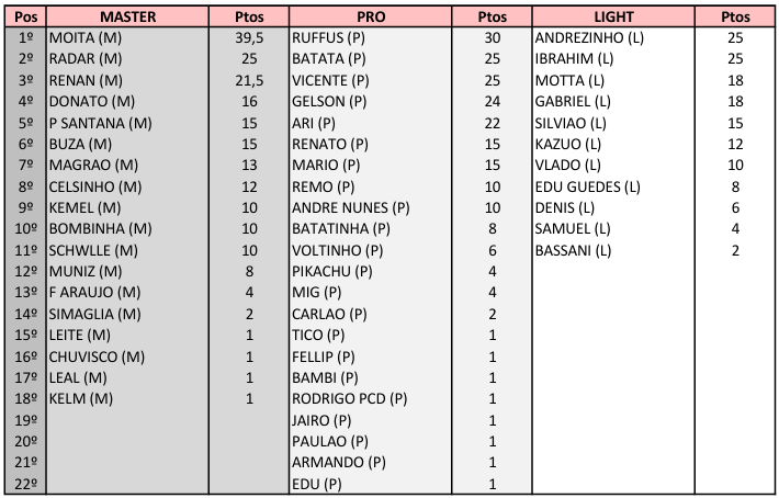 O critério para cálculo da Tabela e do Ranking consta do regulamento